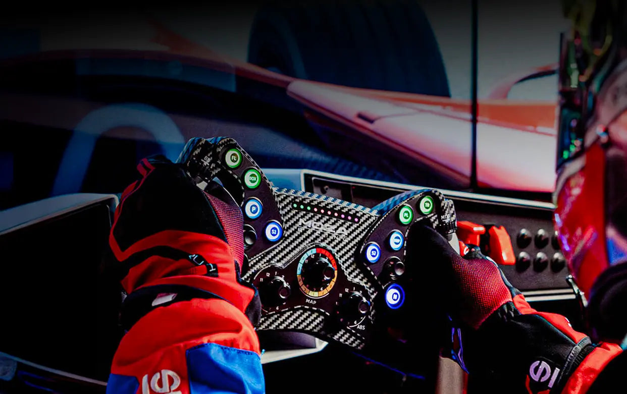 The KS wheel provides up to 70 fully programmable input signals, including 3 rotary encoders, 2 thumb encoders, 2 joysticks, 10 RGB buttons, and dual-clutch paddles. This gives you total control over functions like brake bias, traction control, ERS, DRS, ABS, and in-game navigation — all without taking your hands off the wheel.